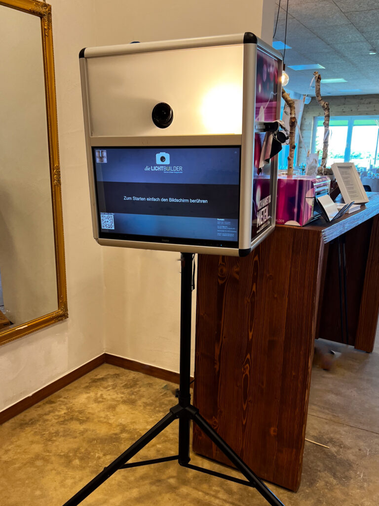 Mit diePhotoBOOTH bekommst du ein echtes Highlight für dein Event! Einfach aufstellen, Touchscreen drücken und los geht der Fotospaß.