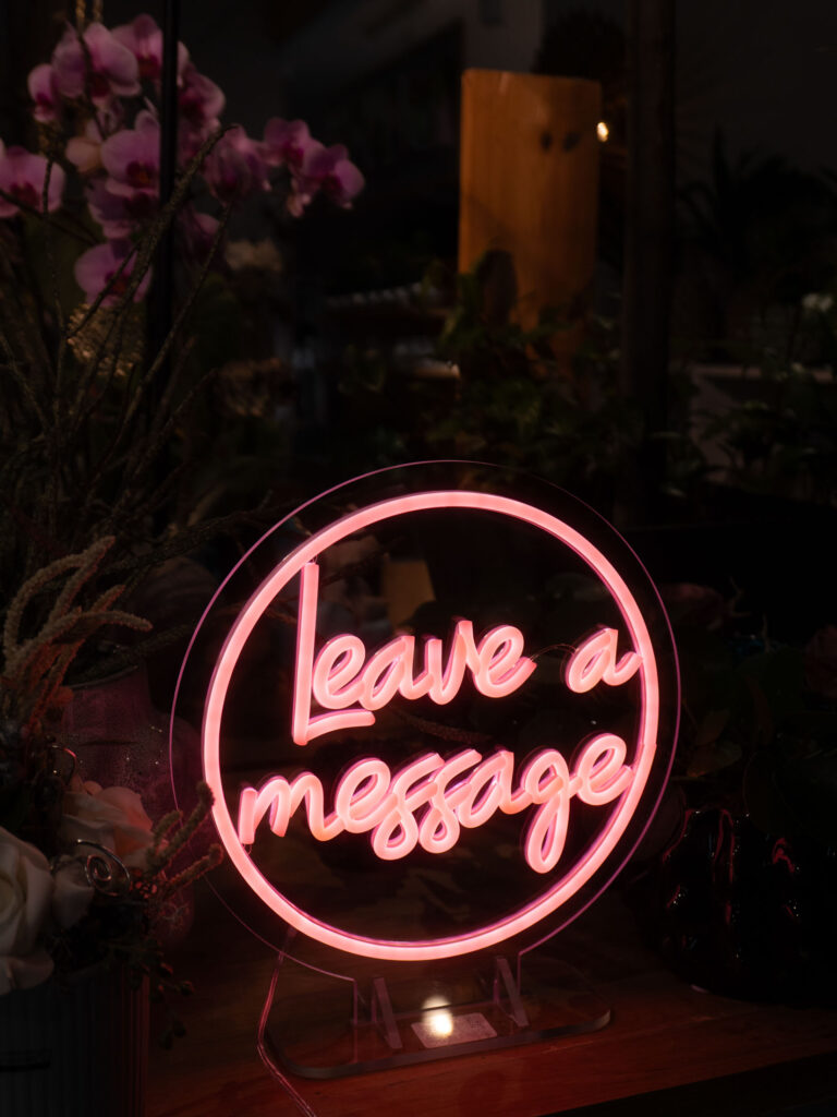 Das Telefon in einer passenden Tasche/ Koffer. Eine Anleitung für dich als Mieter (wie du eine Begrüßungsnachricht aufnimmst), ein Aufsteller mit Kurzanleitung für deine Gäste, eine der auf den Bildern sichtbaren LED-Tafeln „leave a message“, eine Powerbank, ein USB-Kabel und eine Erklärung, wie du dir die Videos zu Hause herunterladen kannst.